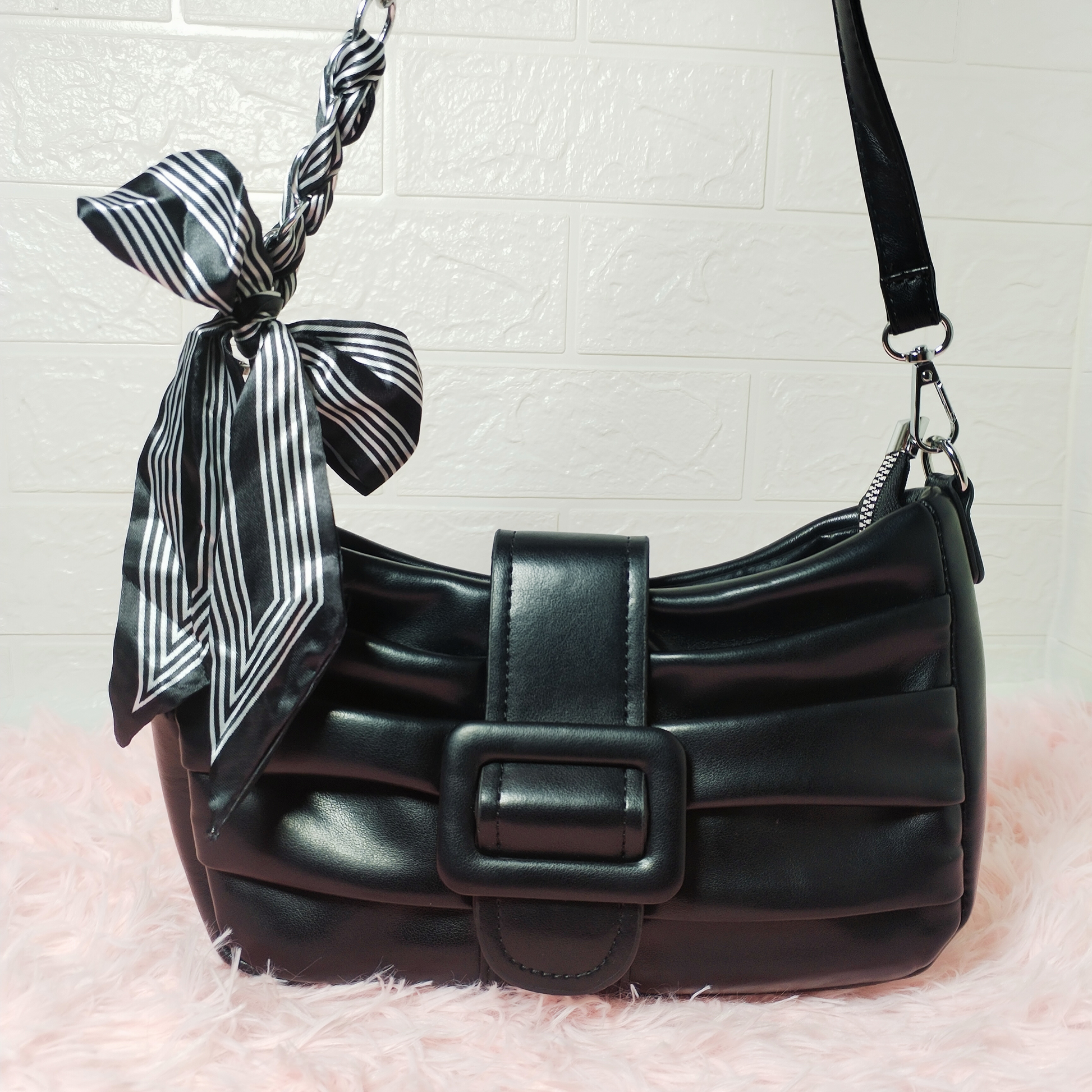 Estilo y practicidad sin perder glamour. La baguette de cuerina es versátil, ligera y con acabados impecables. Una opción accesible que realza cualquier look.